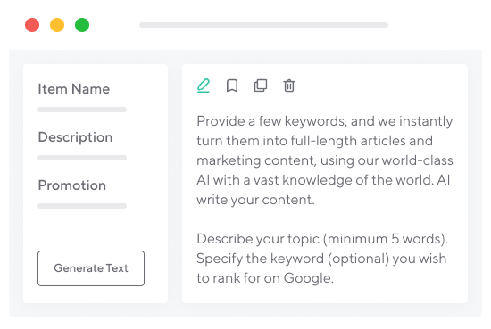 From ecommerce to electric cars, our AI content generator knows a lot about any niche.